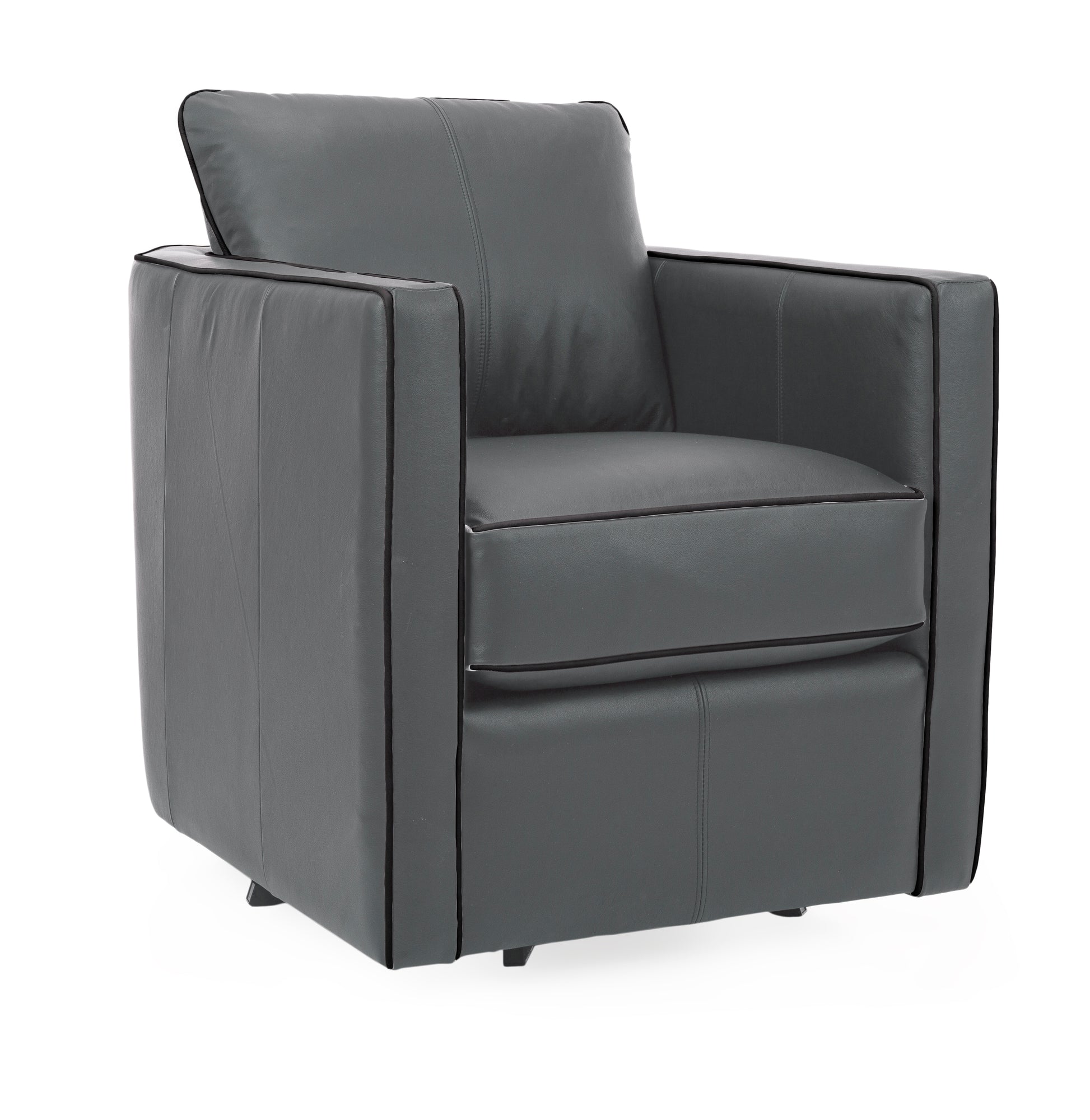 Modern Swivel chair with a playful side. Available with contrast welt in fabric, so have some fun! This swivel chair is loose back with box seat. Super comfortable, super fun and great for small scale spaces.