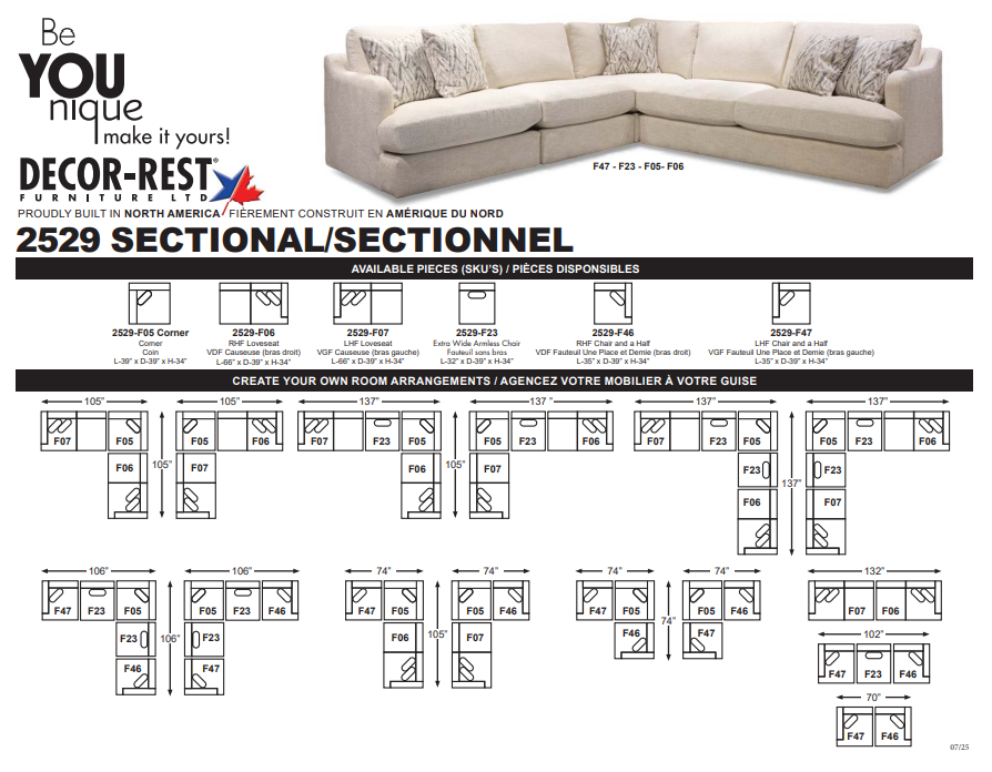 - RHF Loveseat: 66" L x 39" D x 34" H