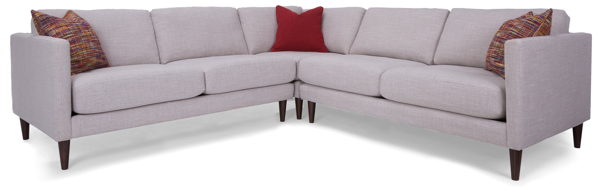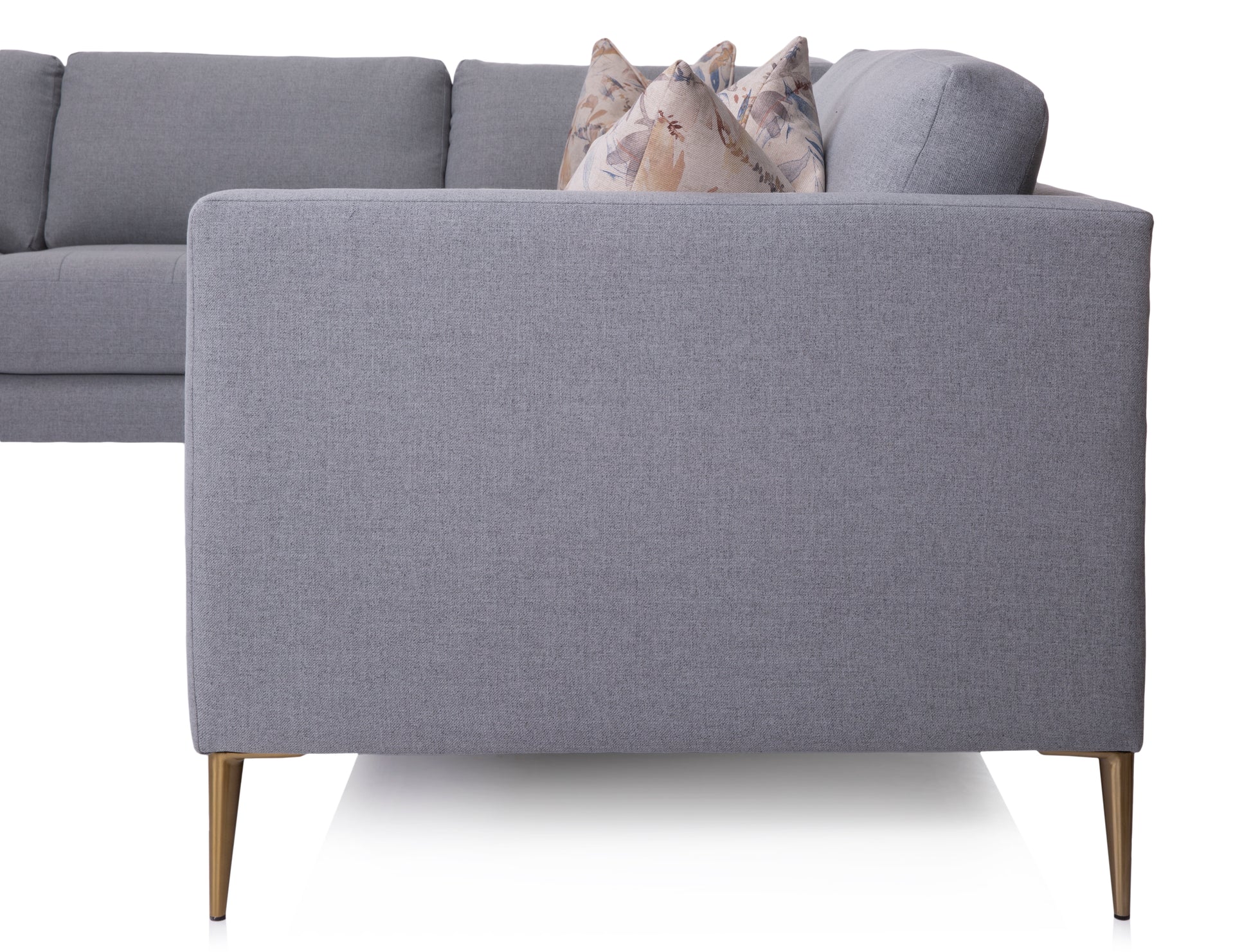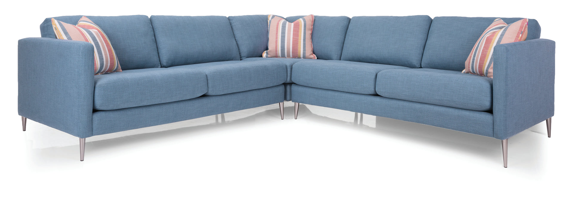 Modern sectional with loose back and box seat with top stitch. This uber stylish sectional comes with premium high-resiliency super soft foam core for comfort and longevity. This style also offers reversible seat cushion, waffled on one side and plain on the other. Choose between 7” wood legs to create a mid-century look or 6.7” metal legs to create a chic modern look