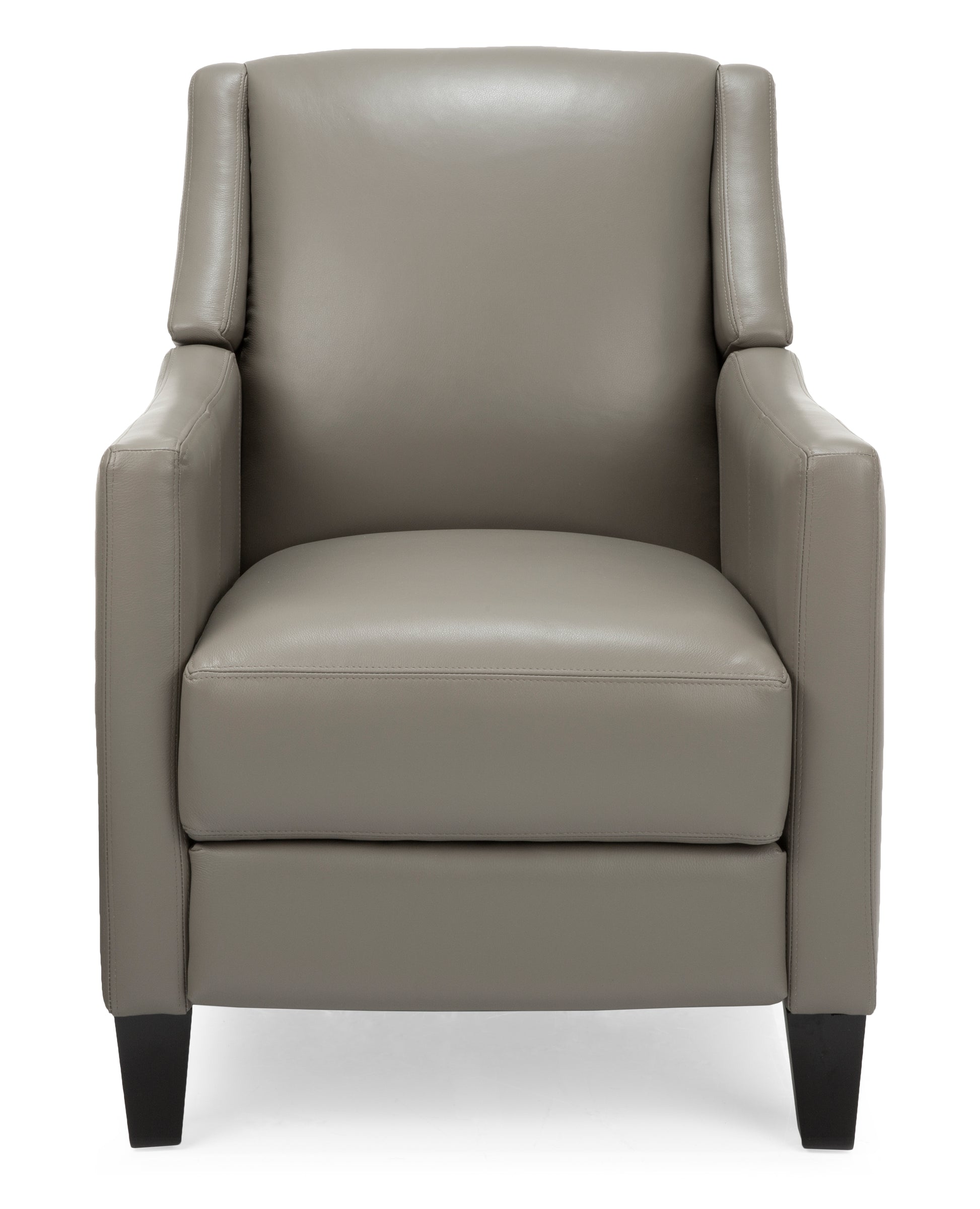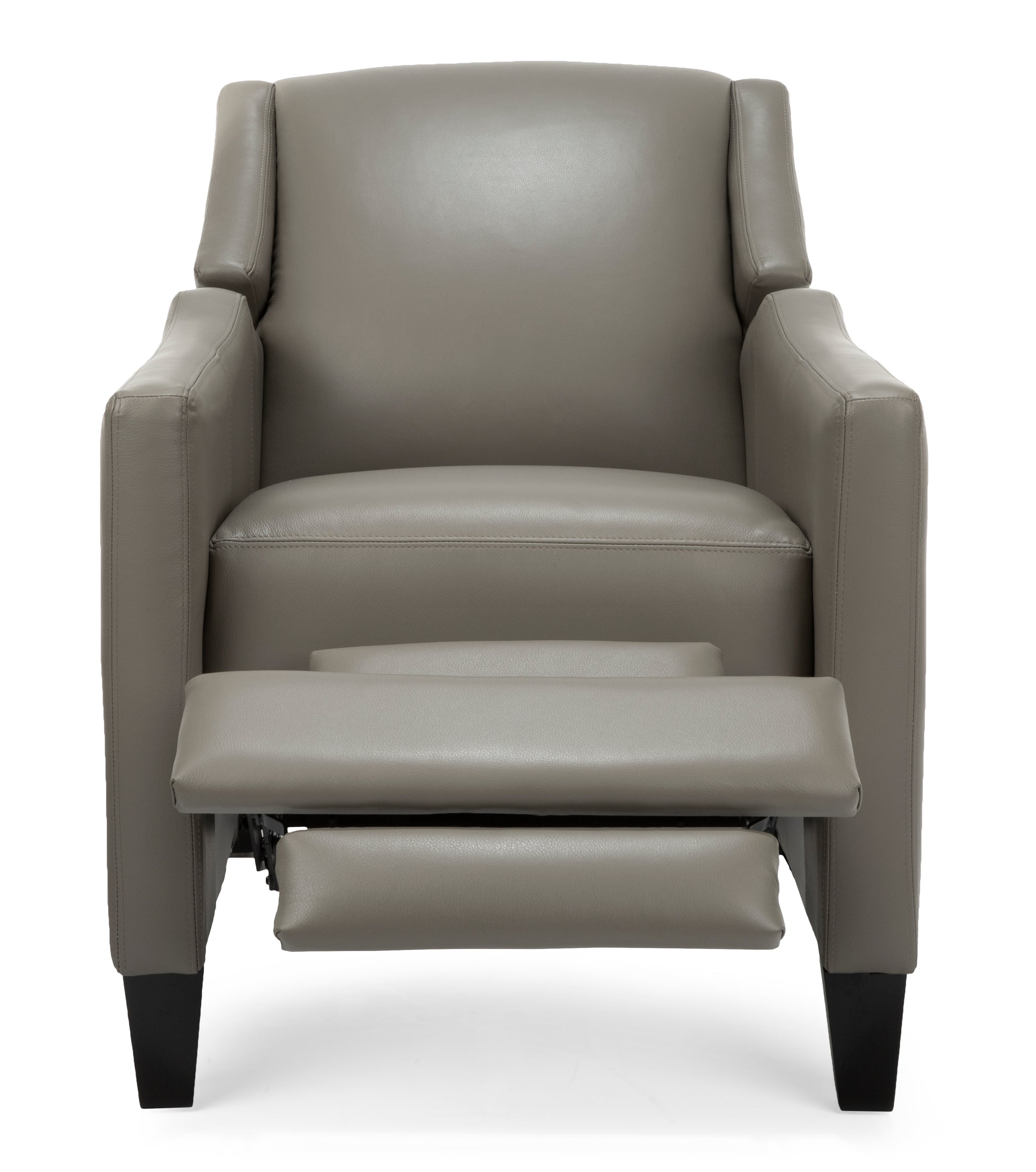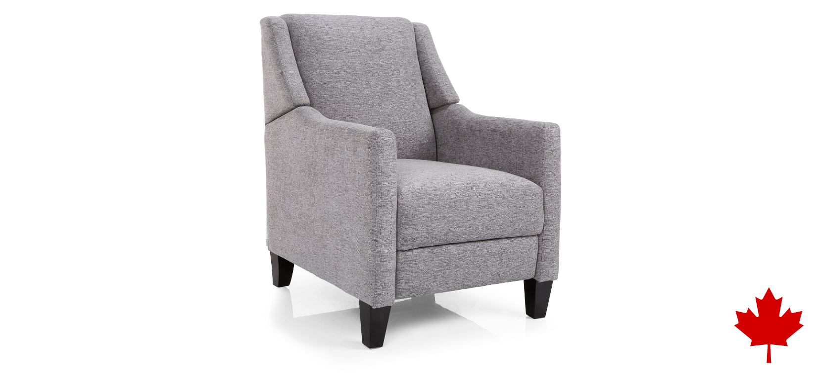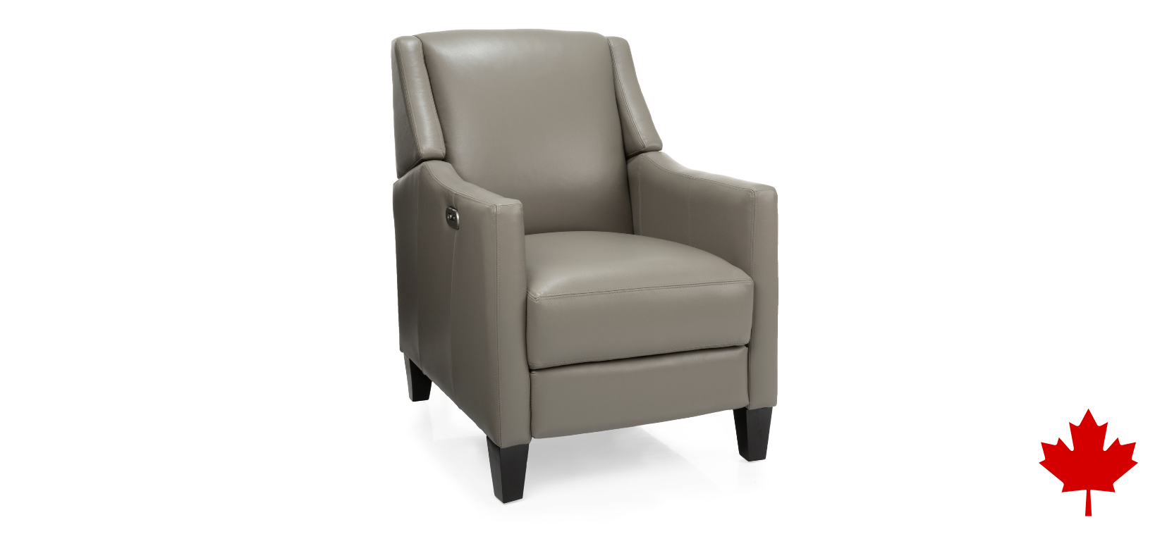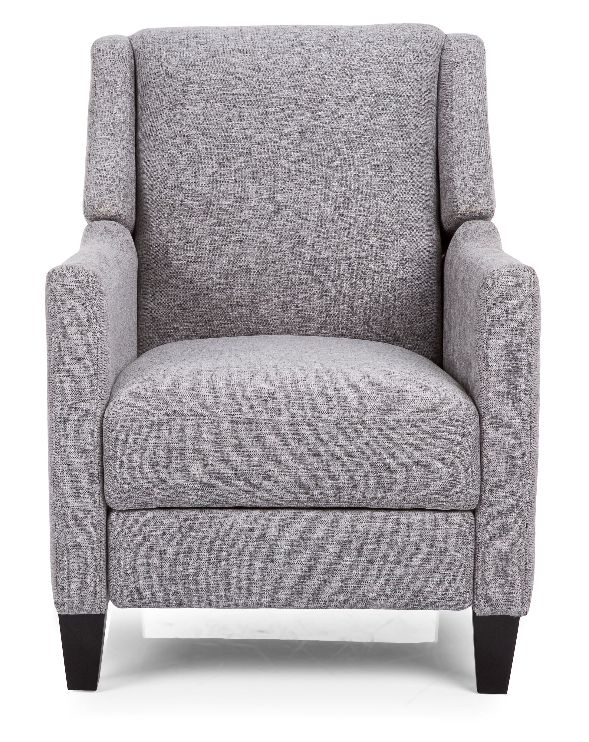 Recliner chair with high back, slim arms and exposed wood legs. This streamline design puts comfort center stage. At a touch of a button, you can recline with foot rest extended and just relax. Available in Push back or Power.