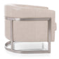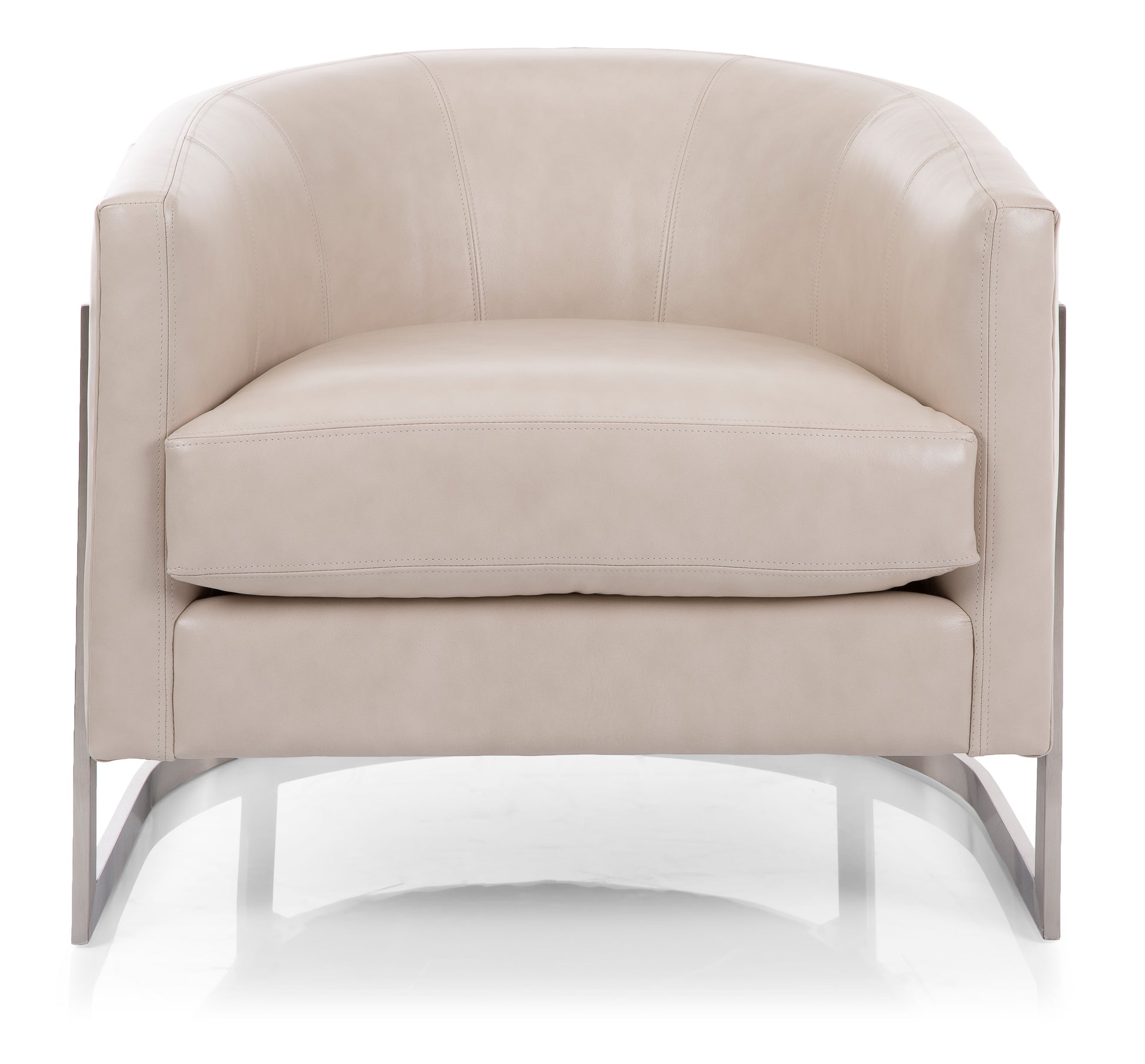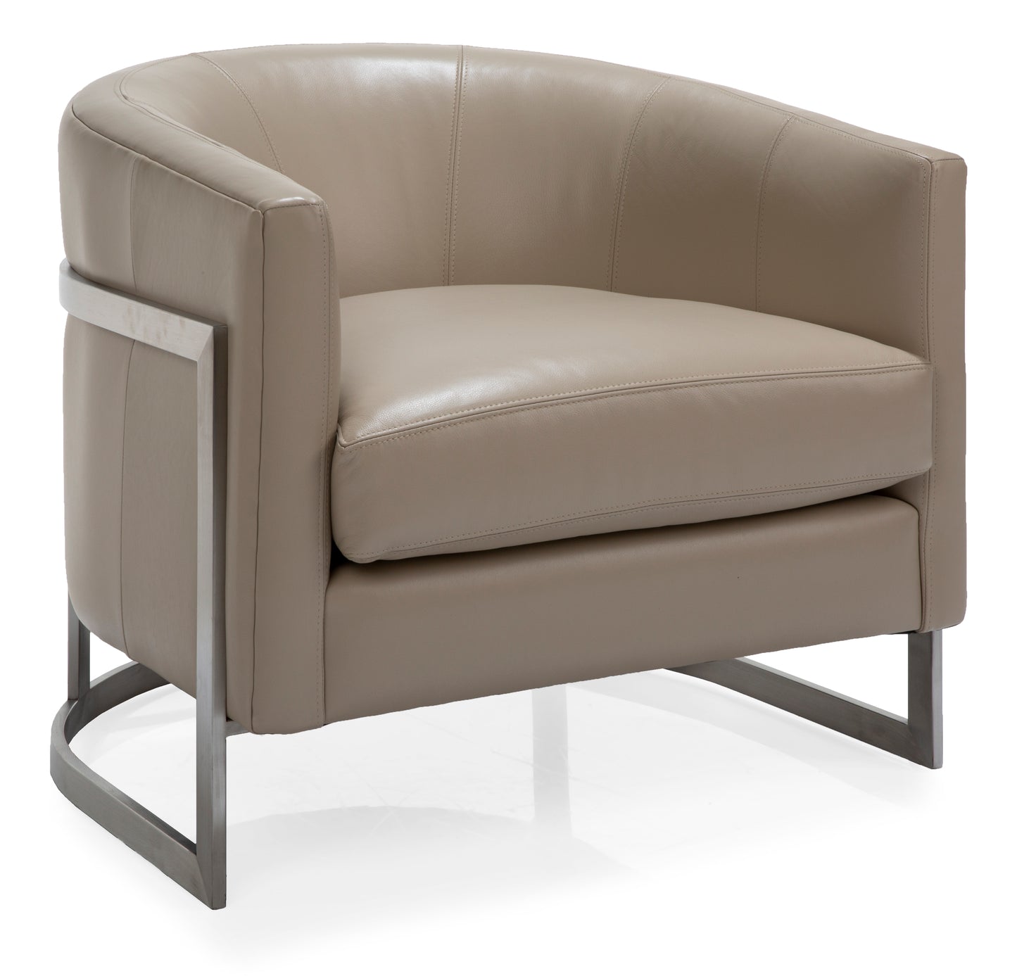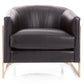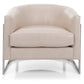 Chair is a 1970’s inspired silhouette, a modern take on the club chair. Supported by a sleek metal frame, the sloped arm design offers comfort with an enveloping rounded back.