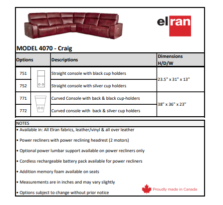 Matching Sofa/Loveseat Available (See 4070 Craig Sofa/Loveseat)