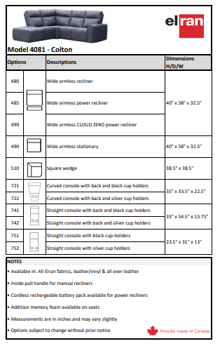 Matching Sofa/Loveseat Available (See 4081 Colton Sofa/Loveseat)