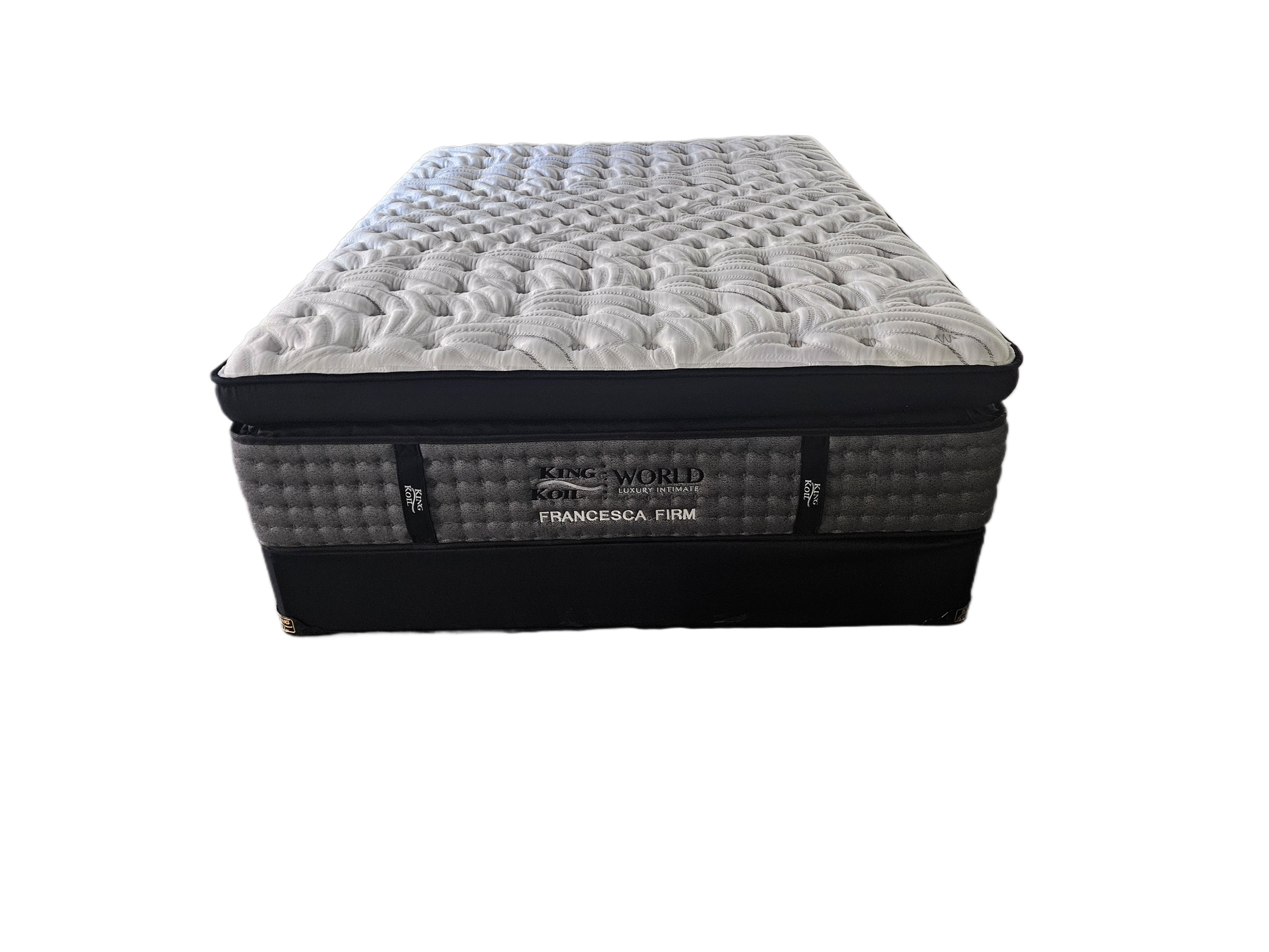 The Francesca Firm/Plush Euro Top by King Koil is designed for sleepers who want a supportive, structured feel without sacrificing pressure relief. Built with advanced spinal contour technology, premium latex components, and breathable cooling foams, this mattress delivers balanced comfort, durability, and long-lasting performance.