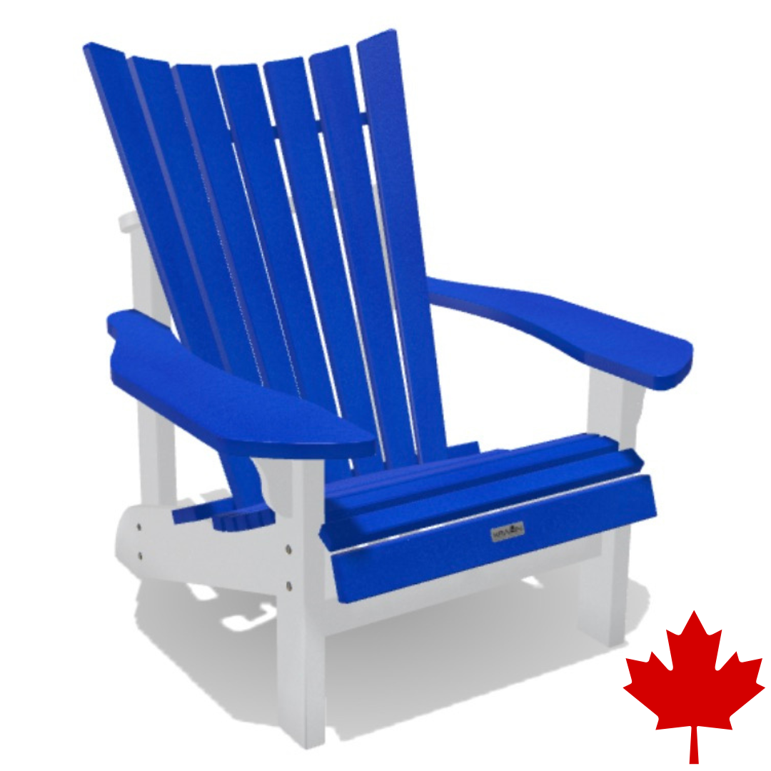 The Adirondack chair has always been a popular choice among the outdoorsy types, and a favourite for those seeking the unmatched comfort and unique style they boast. Especially famous and loved in the Adirondacks, and the Muskokas of Canada near the home of KRAHN. Our special version of the Adirondack chair, the Yacht Club Chair, is the ultimate in comfort and style built heavy duty, offering superior strength and durability. It's based on the Deluxe, but has a few design changes of it's own, such as the reverse curve back and exclusive arms. It's weatherproof. It looks great, and sits even better. It's customizable, with 676 available colour combinations. It's the boss wherever you put it. Remember to also check out the accessories, such as the adjustable Head Cushion, or the swivel Cup Colder, to maximize your comfort.