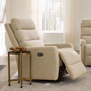 The Kristisha Recliner blends sleek modern design with luxurious comfort. Its triple-pillow back, filled with adjustable premium fibers, offers tailored support for both upper and lower back. Customize the comfort with built-in access panels that let you adjust the fill to your liking.